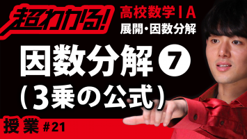 3乗の公式(展開・因数分解)のポイントは! ✅ 3乗の展開は、かっこの中身を項に分けて考えて2つの項を合わせて3個使うパターンをすべて考える!「+3倍」は覚える! ✅ 3乗の因数分解は 【1】指数を取った種を書く。 【2】種をそれぞれ2乗したもの書く。 【3】種を掛けて「-」をくっつける!この「-」にだけ注意! 👇共通テスト数学で9割取るための『超わかる!共通テスト対策講座』はコチラ👇 ▶https://www.infotop.jp/click.php?aid=403908&iid=92975 👇24時間サポート付きskype数学個別指導をご希望の方はコチラ👇 ▶http://kouki-honda.jp/skype/ ✅【最強の勉強法】「超わかる!授業動画」効果的な活用術 ▶︎https://youtu.be/XLFSQae9qdE 💯『中学数学の全部』を一気に勉強したい方はコチラ ▶https://bit.ly/3xxKKzQ 💯『高校数学の全部』を一気に勉強したい方はコチラ ▶︎https://bit.ly/3rHCyfg 💯『高校化学の全部』を一気に勉強したい方はコチラ ▶https://bit.ly/3pjhI3e 💯『高校英語の英文法全部』を一気に勉強したい方はコチラ ▶https://bit.ly/3ly2RRu 🔥激論集「塗りつぶせ」のを初めからご覧になりたい方はコチラ🔥 ▶︎https://bit.ly/3GaM1jo 👇『展開・因数分解』を初めから学べる再生リスト👇 ▶https://bit.ly/3HW6QR0 🎥前の動画🎥 ✅指数法則 ▶https://youtu.be/0C4AHjVPKZM 🎥次の動画🎥 ✅3乗の公式 ▶https://youtu.be/E-DE9QTjqY4 ✅「3乗の公式(展開・因数分解)」が苦手すぎる! ✅「3乗の公式(展開・因数分解)」を一から丁寧に勉強したい! そんな、あなたのための「3乗の公式(展開・因数分解)」授業動画へようこそ!! このオンライン授業で学べば、あなたの「3乗の公式(展開・因数分解)」の学力は一気に強くなり、「3乗の公式(展開・因数分解)」に対するあなたのイメージはガラリと変わります! ✨未来のあなたはこうなっている!✨ ✅「3乗の公式(展開・因数分解)」の全体像がわかる! ✅「3乗の公式(展開・因数分解)」の苦手が克服される! ✅「3乗の公式(展開・因数分解)」の受験問題に自力でチャレンジできる! このオンライン授業では、超重要な公式や、基礎的な問題の解き方を丁寧に解説しています! リアルの授業では絶対に表現できない動画の魔法を体感すれば、教科書の内容や学校の授業が、わかる!デキる!ようになっているはず! ※動画やチャンネルへ頂いた素敵なコメントは、チャンネル内で紹介させて頂くことがございます! ⚡『超わかる!授業動画』とは⚡ 中高生向けのオンライン授業を完全無料配信している教育チャンネルです。 ✅休校中の全国の学校・塾でもご活用・お勧めいただいています。 ✅中高生用の学校進路に沿った網羅的な授業動画を配信しています。 ✅「東大・京大・東工大・一橋大・旧帝大・早慶・医学部合格者」を多数輩出しています。 ✅勉強が嫌いな人や、勉強が苦手な人に向けた、「圧倒的に丁寧・コンパクト」な動画が特徴です。 ✅大手予備校で800人以上の生徒を1:1で授業したプロ講師の「独創性」「情熱」溢れる最強の授業。 ✅ただ難関大学の合格者が出ているだけでなく、受験を通して人として成長したとたくさんの方からコメントやメールを頂いている、受験の枠を超えたチャンネル。 ✅外出できない生徒さんの自学自習に、今も全国でご活用いただいております。 👍数学・英語の成績が確実に上がる勉強法!(授業動画の使い方) 【数学】➡ https://youtu.be/wtajeuzN3dY 【英語】➡ https://youtu.be/EHtv83-s8ns 【キーワード】 3乗の公式,展開,因数分解,式の計算,高校1年生,高校数学,超わかる,授業動画,オンライン授業,映像授業 #3乗の公式 #展開 #因数分解 #式の計算 #高校1年生