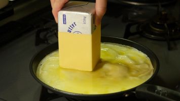 7.卵焼き用のフライパンで焼きます。
