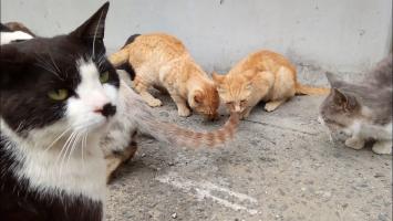 登場猫(野良猫・子猫):縞模様、サバトラ、ブチ猫、白ブチ、黒ブチ、茶トラ、黒猫、三毛猫、他