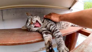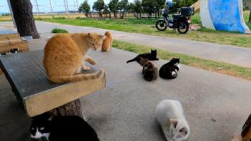 パーキングの休憩所で行われてる猫の集会に参加してきた【感動猫動画】