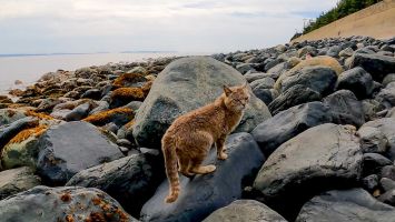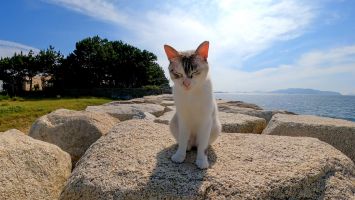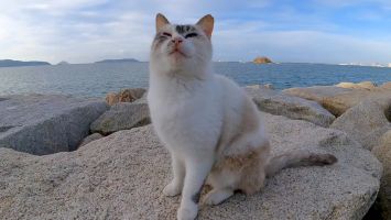 防波堤の野良猫の散歩に付いていってみた【感動猫動画】