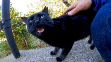 公園の階段にいた黒猫をナデナデすると猛烈に甘えてきた【感動猫動画】