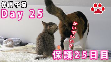 【保護25日目】25日目 子猫が三毛猫のお尻匂いを嗅いでいた【瀬戸のここ日記】
