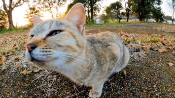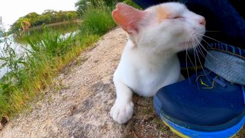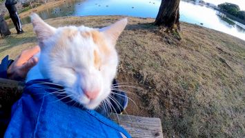 池の畔にいた猫をナデナデするとゴロゴロ言いながら擦り寄ってきてカワイイ