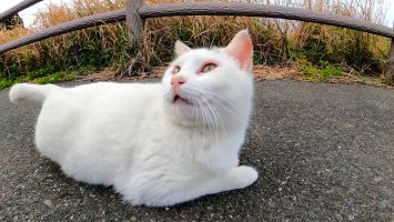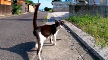 坂道の途中で寝ていた猫をナデナデすると別の猫も撫でられにきた