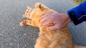 夕方、道路脇で寝ていた茶トラ猫を見掛けたのでナデナデすると擦り寄ってきてカワイイ【感動猫動画】
