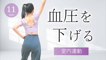 血圧を下げる効果が期待できる11分間の体操です。まずはじめに、心拍数を上げる有酸素運動を行います。次に、筋力を高める軽いトレーニングを行います。血圧を下げるには、心拍数が通常より少し高くなる程度の運動がおすすめです。そのような運動を継続すると、高血圧のリスクが30%も低くなるという研究結果もあります。 そこで、有酸素運動の後半では、速歩きを取り入れてみました🚶🏻‍♀️自分の体調に合わせて無理のないペースで挑戦してくださいね✨ そして、血流を改善すると血管も軟らかく血圧も下がりやすくなります。ふくらはぎの筋肉を刺激して血流を良くする運動も後半に取り入れていますよ✨ また、肩周りを動かす動作を多く入れました。凝りやすい肩をほぐし、血行を整え、高血圧予防に繋げましょう。是非一緒にやってみてください♡ 【動画の詳細】  - ローインパクト(ジャンプなし)  - 強度★☆☆  - 難度★☆☆  - Time : 11min ⚠️注意事項  ▸ 体調の良い時に行いましょう  ▸ 滑らない環境で行いましょう  ▸ 水分補給も忘れずに  ▸ つらくなりそうな時はペースを徐々に落として休憩しましょう  ▸ こちらのエクササイズは万人に適しているとは限りません。当チャンネルは、動画視聴による怪我、体調悪化、その他損害に関して一切の責任を負いません。ご心配な方は実践する前に医療機関にご相談ください。