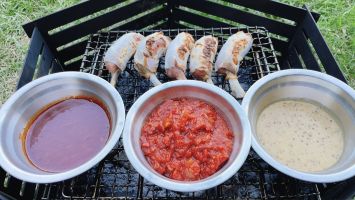 骨付きソーセージを3種の手作りソースにどっぷりつけてガブッといくのが幸せすぎて・・・