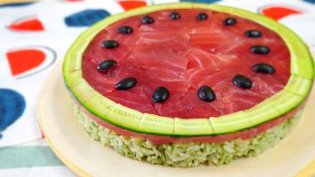 スイカみたいな寿司をマグロの刺身で作る